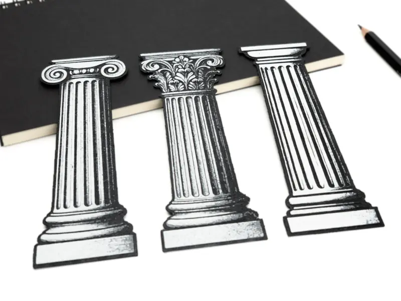 Featuring the distinct Doric, Ionic, and Corinthian orders, these detailed markers celebrate historical design. Perfect for marking pages in academic texts, philosophy, or classic literature, they serve as a sophisticated and functional accent.