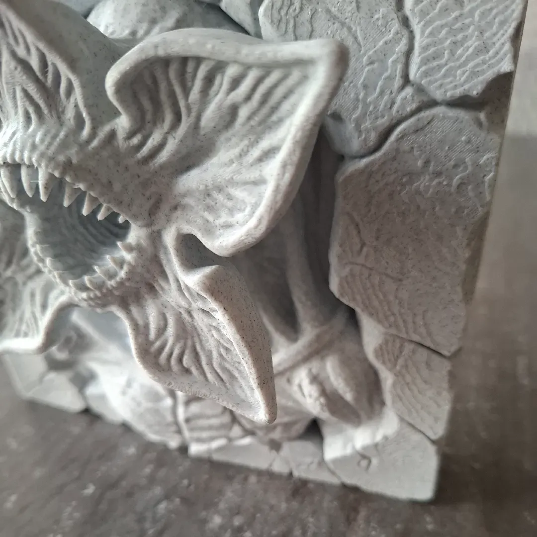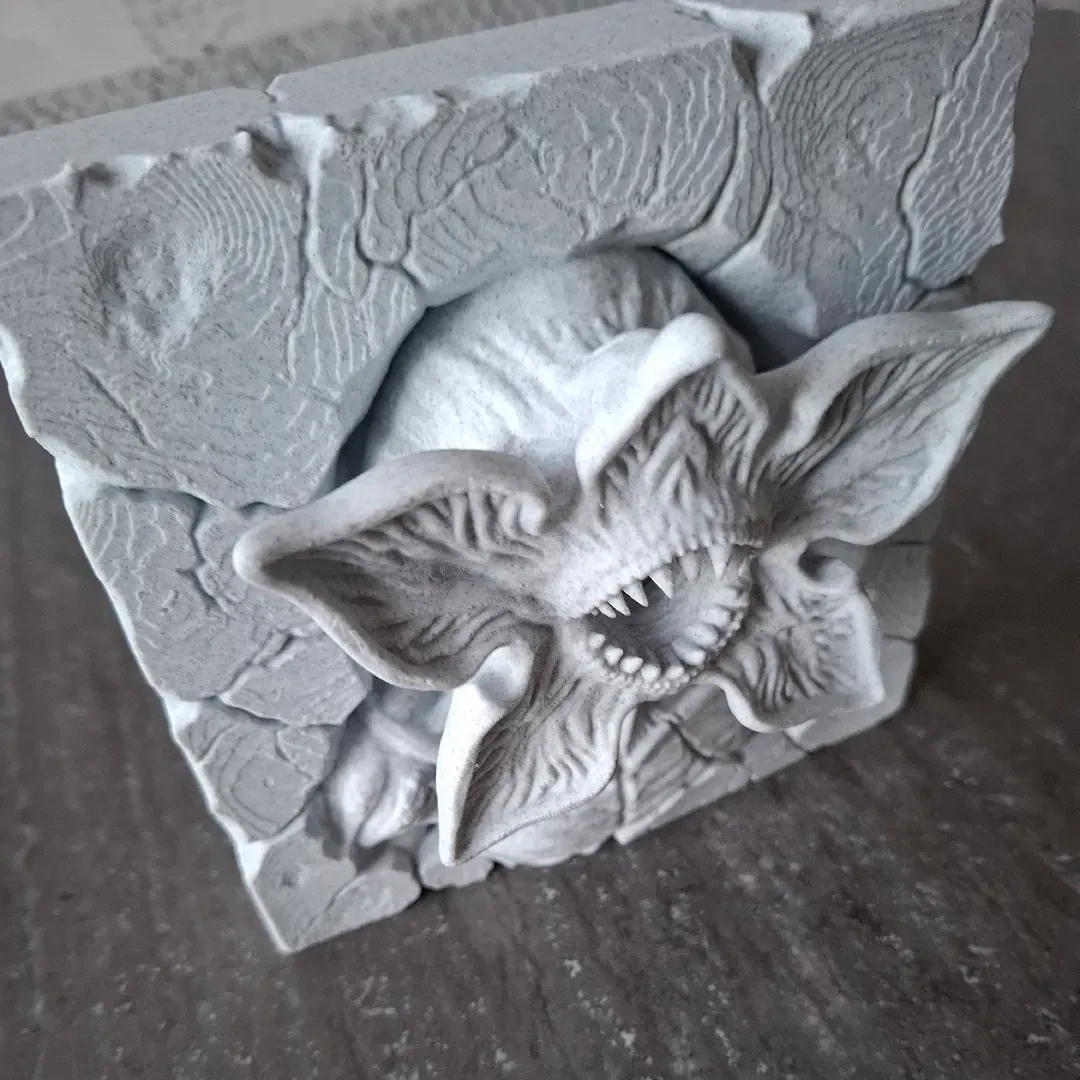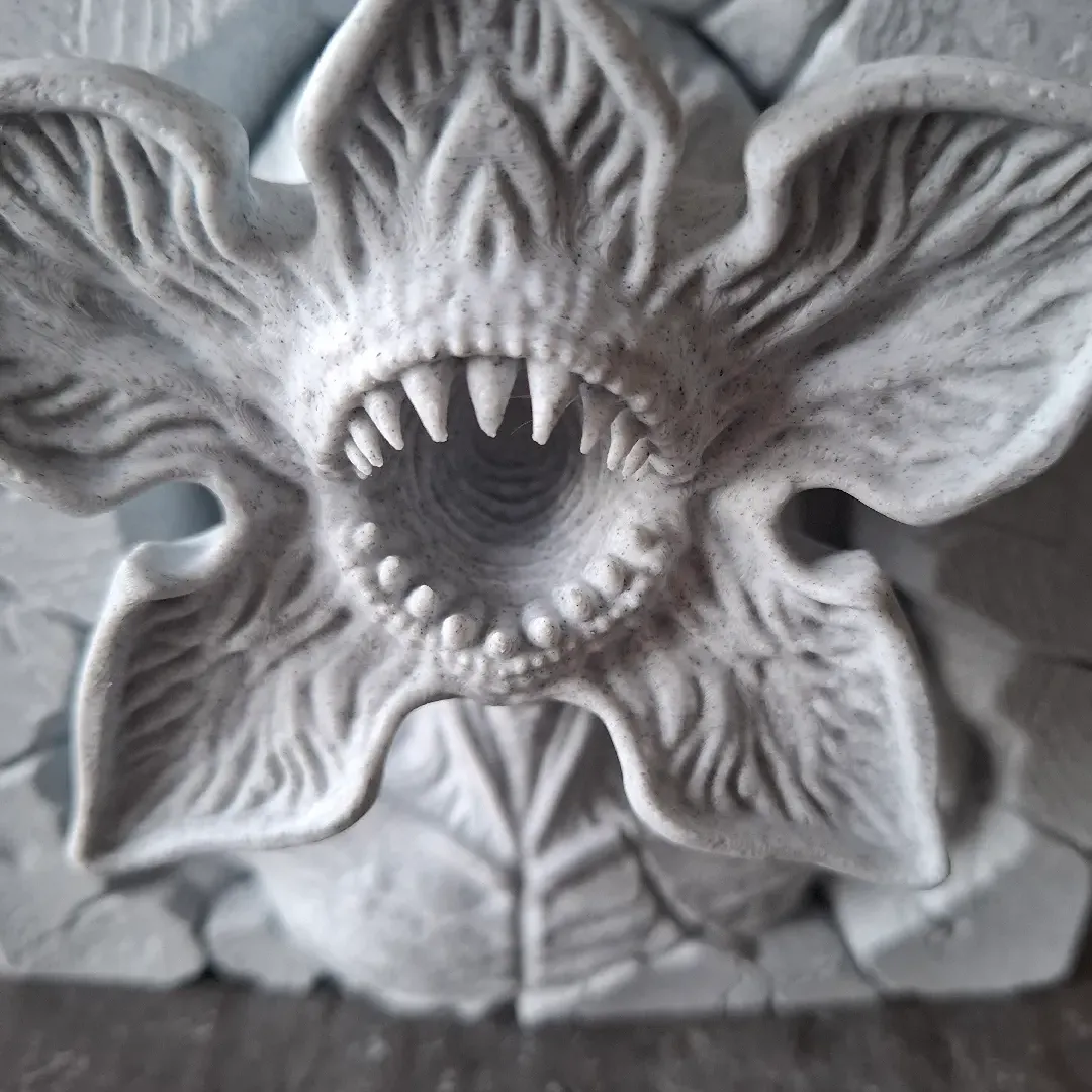 This haunting Demogorgon relief sculpture captures the chilling power of Stranger Things’ villain. With intricate details, the sculpture depicts the Demogorgon’s terrifying head emerging from a textured background, creating a captivating display piece for fans. A must-have for horror and Stranger Things collectors.