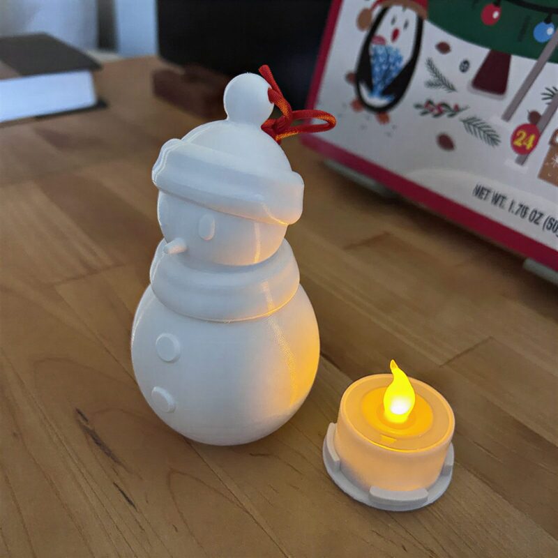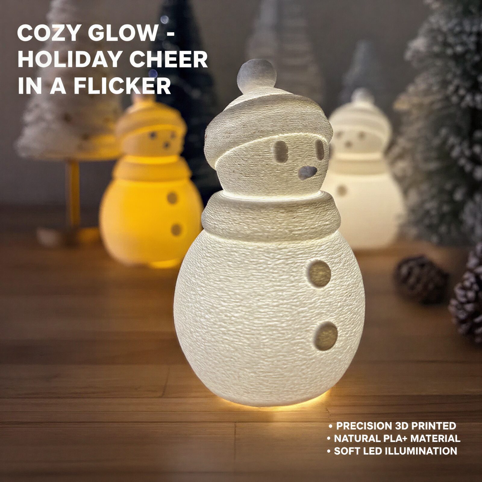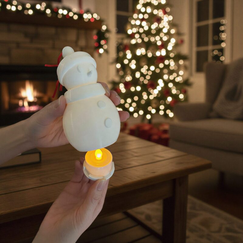 This delightful glowing snowman tealight adds a warm, festive touch to your holiday décor. Crafted with a 3D-printed textured finish, it softly illuminates with an LED tea light, creating a cozy ambiance. Perfect for mantels, shelves, or as a charming centerpiece.