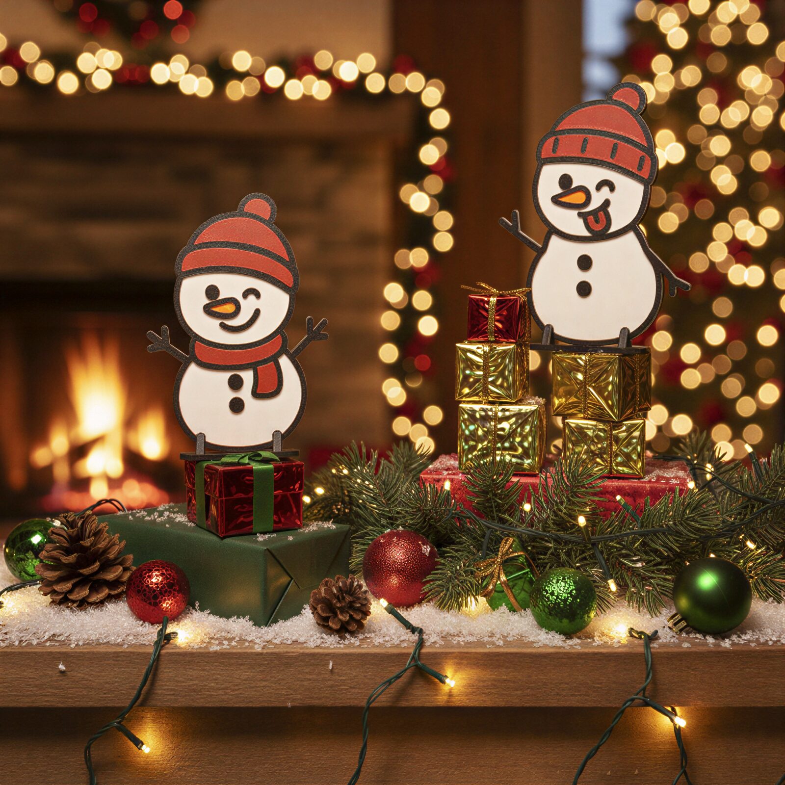 Add a touch of whimsical winter charm with this set of three 3D printed snowmen. Each snowman boasts a cheerful expression and unique pose, crafted in a clean, modern cartoon style. Perfect for adding festive flair to your holiday decor.